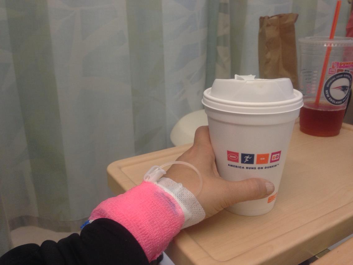 Tina brought tea from Dunkin’ Donuts – highlight of the chemo infusion!
